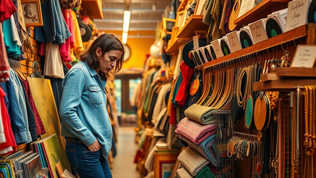 To succeed in your thrift store treasure hunt, set clear goals like finding a vintage jacket or quirky art, and approach with a plan. Be patient, dig through racks, and inspect items carefully for quality and hidden damages. Wear comfortable shoes and bring reusable bags for easy carrying. Keep an open mind, consider minor makeover opportunities, and enjoy the adventure. If you explore further, you’ll discover even more tips to make your secondhand shopping enjoyable and successful.