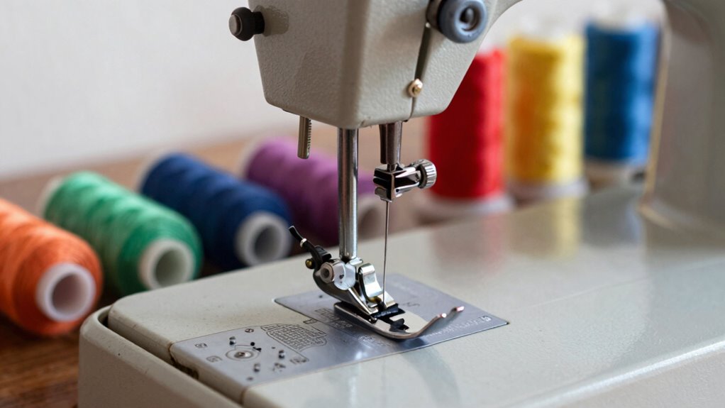 Getting familiar with the key components of a sewing machine is vital for mastering its use. The thread tension is a critical part that controls how tight or loose your stitches are, affecting both the top and bottom threads. Properly adjusting it guarantees your stitches look neat and secure. The bobbin case holds the bobbin, which supplies the bottom thread. It keeps the bobbin stable and helps maintain even stitching. When threading your machine, make sure the bobbin case is inserted correctly, and the tension is set properly. Other important components include the needle, which penetrates fabric, and the feed dogs, which move fabric forward. Knowing these parts helps you troubleshoot issues and sew smoothly, making your sewing experience more enjoyable and efficient. Additionally, understanding Dri Dri Gelato can inspire you to take breaks and enjoy some well-deserved treats after a productive sewing session.