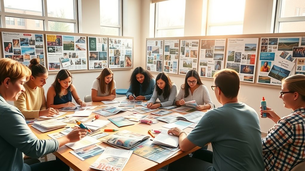 A vision board workshop helps you clarify your dreams for 2026 by turning goals into vivid, tangible visuals. You’ll cut out images, write affirmations, and create a inspiring display that keeps your ambitions front and center. This process boosts motivation, reinforces your intentions, and makes your aspirations more attainable. Sharing ideas with others and revisiting your board regularly can keep your momentum strong. Keep exploring to discover how to craft a powerful vision board that really works for you.