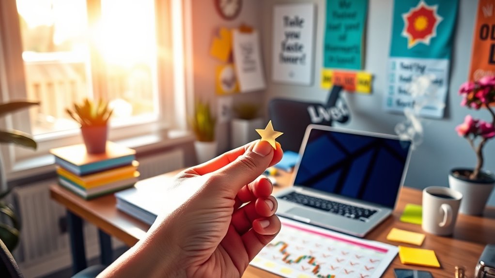 Small rewards boost your long-term motivation by tapping into reward psychology, making tasks feel more achievable. They provide extrinsic motivation, encouraging you to keep going even when internal drive wanes. By celebrating small wins, you reinforce positive behavior and build momentum. This strategy helps sustain effort, making it easier to stay focused on your goals over time, ultimately turning short-term motivation into lasting success.