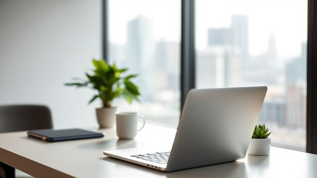 The process also involves regular digital decluttering. Periodically review your apps, subscriptions, and online habits to eliminate what no longer serves you. This ongoing effort reinforces your commitment to a simpler, more focused digital life. Additionally, understanding the role of color accuracy in projectors can help you optimize your viewing environment for a more immersive experience. Ultimately, managing social media use and notifications isn’t just about reducing clutter—it’s about reclaiming your time and mental space so you can lead a more intentional, fulfilling life offline.