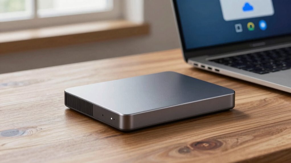 External drives offer great portability and quick access, making them convenient for both personal and business use. However, you need to take into account security risks and whether the device is reliable enough for your needs. For those balancing multiple responsibilities, understanding work-life harmony can help you make smarter storage choices that support your overall productivity. Additionally, data security should be a priority to protect sensitive information stored on external devices. Implementing home safety measures such as secure storage practices can further safeguard your data from theft or damage. Let’s explore the advantages and potential drawbacks of using external drives in different scenarios.