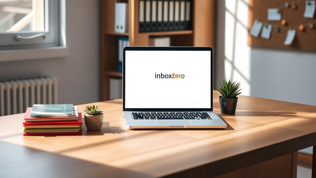 Think of email management tools as your trusty sidekicks, helping you stay on top like a well-organized desk. Productivity tools like Spark, Outlook, and Gmail’s built-in features streamline sorting, filtering, and archiving. They automate tasks, prioritize messages, and set reminders, making it easier to maintain inbox zero long-term. Using these tools guarantees your email stays tidy, boosting your efficiency and freeing up more time for what truly matters.