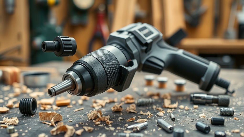 Choosing an impact driver with lower noise levels can make a significant difference, especially if you work in noise-sensitive environments like residential areas or shared workshops. Impact drivers with hydraulic mechanisms are particularly quieter, reducing noise by up to 57% compared to traditional models. Typically, quieter impact drivers produce around 85 dB or less during operation, making them more comfortable for prolonged use. These models are ideal when you need to minimize disturbance or protect your hearing. Additionally, lower noise often correlates with softer impact forces, which can reduce vibration and user fatigue. Professional-grade impact drivers that focus on noise control usually feature specialized motors and impact mechanisms designed to keep sound levels down without sacrificing power, giving you both performance and comfort.