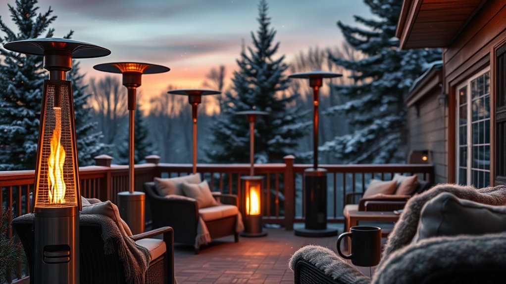 When it comes to staying warm outdoors this winter, I’ve found some fantastic patio heaters that truly deliver. I love the Cuisinart Portable Tabletop Heater for its convenience, and the Mr. Heater MH540T offers powerful warmth for larger spaces. Don’t overlook reflector shields, too—they’re game changers for enhancing heat efficiency. For those with substantial outdoor areas, the EAST OAK 50,000 BTU heater is a great choice. Keep exploring, and I’ll share more options to warm up your winter gatherings!