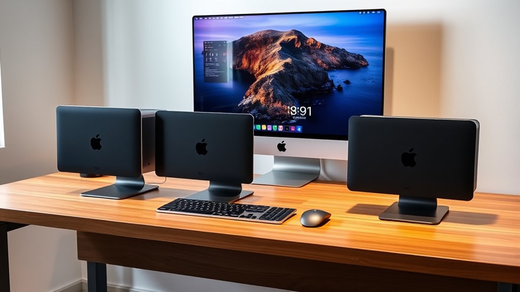If you’re looking for powerful, reliable, and cost-effective options, the 14 best renewed Mac Studios are perfect. They offer high-performance M4, M4 Pro, and M4 Max chips, large high-res screens, and premium build quality, all in compact sizes. These refurbished models deliver professional work capabilities while saving you money. If you keep exploring, you’ll discover the top choices that blend power and value for demanding tasks.